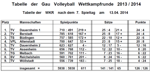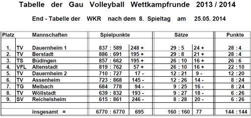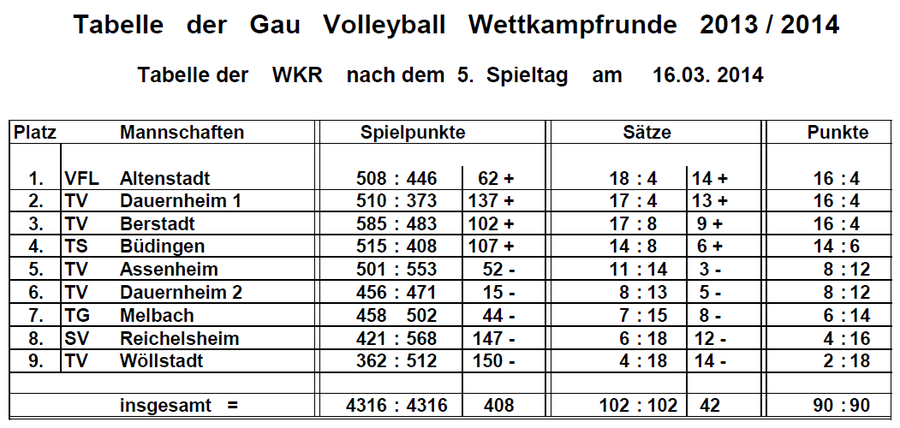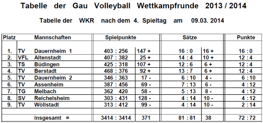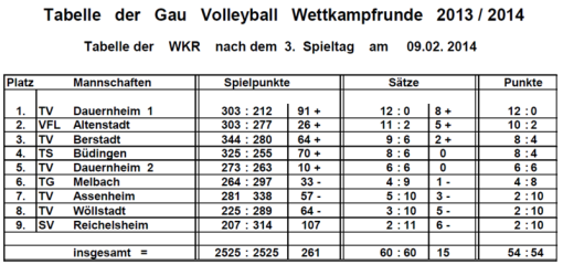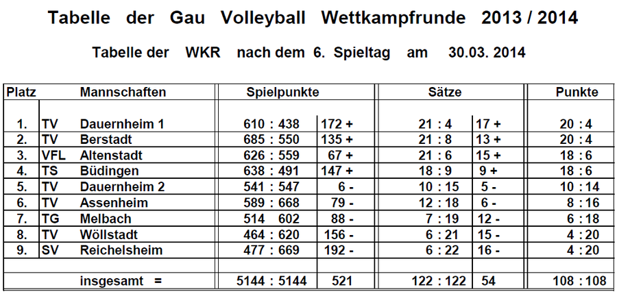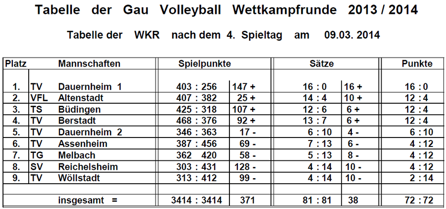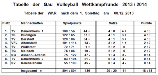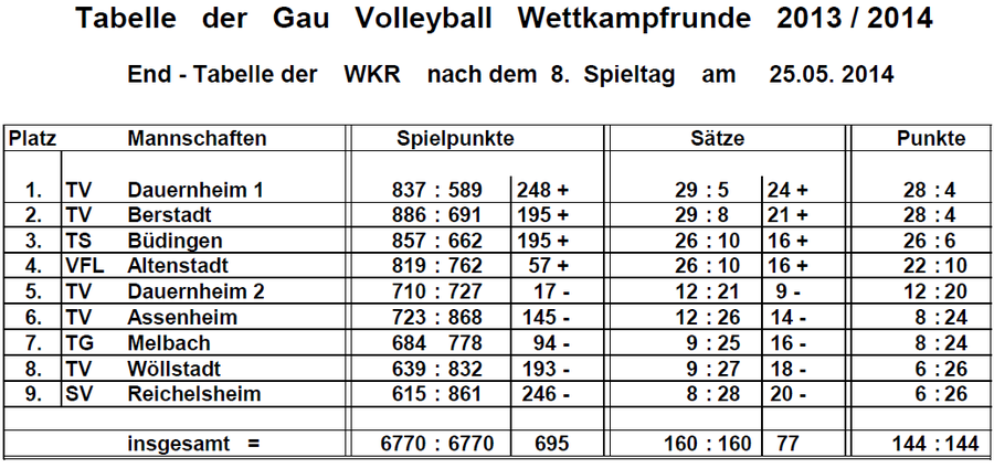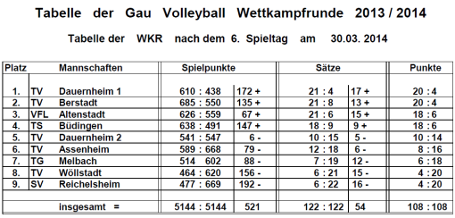 auf der folgenden Seite findet ihr wie auch schon im vorherigen Jahr die Mannschaften, die Spieltage und Spielorte für die kommende Gau-Volleyball-Wettkampfrunde (WKR) 2013/2014.