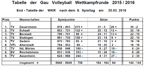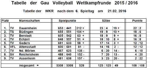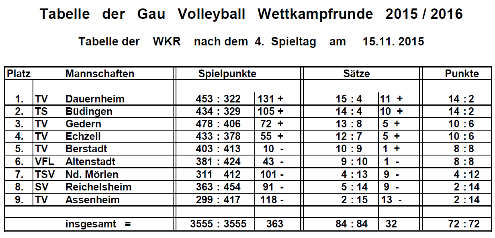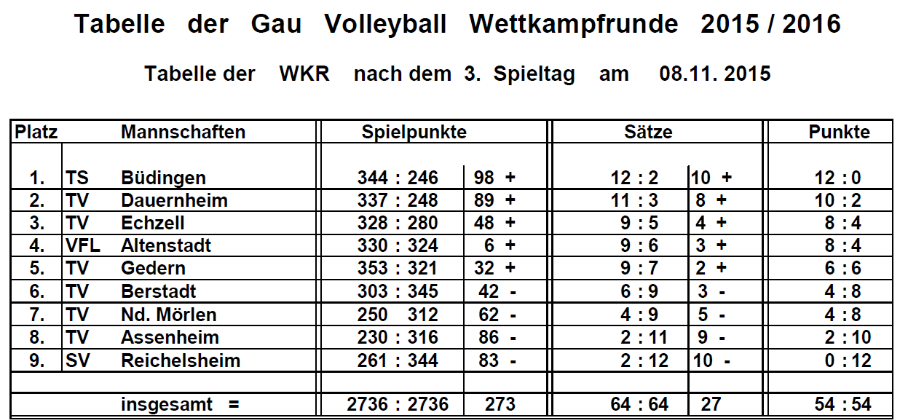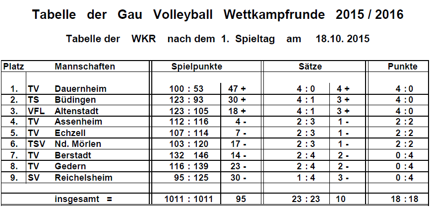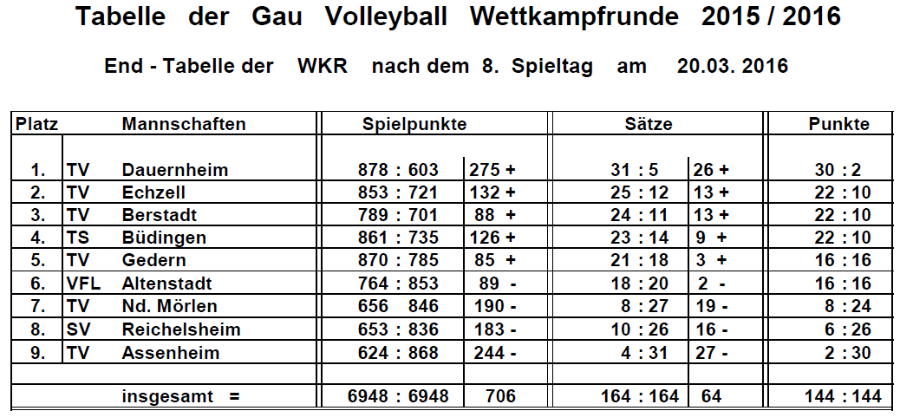auf der folgenden Seite findet ihr wie auch schon im vorherigen Jahr die Mannschaften, die Spieltage und Spielorte für die kommende Gau-Volleyball-Wettkampfrunde (WKR) 2015/2016.